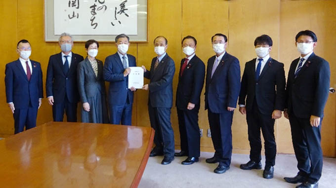 このことを岡山市で確実かつ具体的に実現していくために、本市の実情に鑑み、公明党岡山市議団(以下、市議団)は、大森雅夫・岡山市長に、給食費の負担軽減をはじめとする18項目の重点要望を申し入れました。