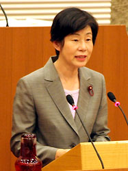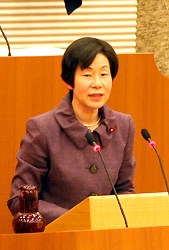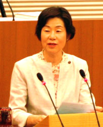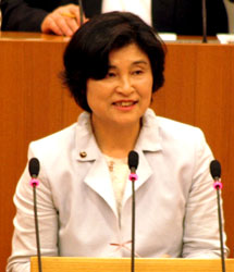 日本復帰後、4000件を越す事件が基地関係でおきているが大きな女性問題である。少子化問題、男女共同参画も女性問題と捉えている間は解決できない、国の課題と捉えなければならない。2020年までに審議会委員の割合を30%以上にする目標達成を目指している。10年前男女共同参画基本法が制定されたが、日本社会で女性の能力が評価されていない。政治参加を増すことは男女ともに、ゆとりの有る働き方を実現することになる。女性議員が増えると政策の優先課題が変わる。党則にクウオーター制を入れていくことが大切であり、女性が女性の支援をすることと教育を受けた女性が広く各分野でより深く学び活動することで目的に近ずける。箱物行政から人を中心にする時代になっている。これをヒューマンニューディールという。子どもを産む、産まないは個人の自由だが、育てるのは社会。切れ目のない支援が重要。児童手当の充実と就学前教育費の無償を目標にしたい。税の集め方と使い方を転換すること。女性と貧困問題を解決すること。(女性労働者の54%が非正規社員)。女性力こそが社会を変える時代です。女性議員の多くが、非自民に属しています。政府のアファーマティブアクションを強く望みます。