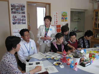 午前中は病院に行く人が多いので、午後それぞれ得意な一品やおやつを持ち寄ってきたり、牛乳パックを利用した手芸やお誕生日会を開催したりして、とても賑やかです。ここがなかったら、うつになっていたかも知れない、ここがあるから元気で暮らせる、みんなの顔を見るのが楽しいとみなさん口ぐちにおっしゃっていました。この地域の特色として店舗付き住宅がたくさんありますが、時代の流れと共に空家になってしまっているので、用途廃止して有効に活用しています。