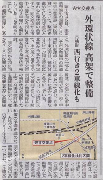 私は250号線長岡、宍甘以東の渋滞緩和対策として、下り2車線化を、また計画中の外環状線が宍甘で交差すると更に渋滞がひどくなるため対策を講じるよう求めてきました。ちなみに記録が残っている昭和58年以降、宍甘の渋滞を改善するよう本会議で主張してきたのは山田録二郎氏(故人)を除いて私だけです。