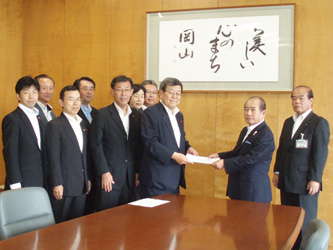 12月3日、公明党岡山市議団は平成25年度当初予算編成を前に、髙谷茂男・岡山市長に対して平成25年度予算要望をいたしました項目の予算要望を行いました。