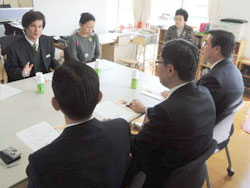 (3)もりおか復興支援センターもりおか復興支援センター 細田玲副センター長から説明をいただく。 県内各市町村や他県からの避難者にきめ細かな支援活動を行う施設として、平成23年7月11日に開設しました。市の復興推進事業のトップに位置づけられています。 一般社団法人SAVE IWATE が業務委託を受け、センター長1名、副センター長1名、スタッフ12名で運営しています。 利用実績は平成25年10月16日現在の累計で、来館者・45,494人、窓口相談・1,286件、電話相談・425人、物資支援・11,126件、戸別訪問・7,721件となっています。 戸別訪問は平成23年8月より面接聞き取りを行っています。生活についての不安、住民票の移動、就職のこと、健康のこと、子どもの進路等必要な方にはそれぞれ行政サービスの窓口につないでいます。聞き取り調査 693世帯 1415人、未接触6名で、盛岡市から個人情報を共有し行っています。個人情報保護のことも考慮すべきですが、避難者の年齢や世帯の状況を把握することは必要なことであり、支援状況を把握するのに有効であると考えています。 訪問基準は要支援、定期訪問、通常、訪問不要、一般生活者の5種に区分され、支援内容は食糧支援、外出困難、求職者、心理的な支援となっています。 センターのイベントとして、お茶っこ飲み会、紡ぎサロン、コンサート、折り紙サロン、学習サロン、囲碁クラブ、FP・行政書士による個別相談会があります。孤立しないように寄り添った支援を行っています。 【所感】盛岡市は内陸部なので震災、津波の影響は大きくはありませんでした。沿岸地消村から避難してこられた方々の支援に、市の予算や、国や県からの補助金があるとはいえ、税金を投入することに市民の反発はなかったのかとお聞きしたところ、宮沢賢治のことを真っ先に述べられました。郷土の偉人の生き方、思想が深く岩手県民、盛岡市民に定着していることをうかがわせるものでした。ことさらそれを前面に打ち出して復興支援、まちづくりに活かしていこうということではないかもしれませんが、そこに生きる、生きていくための知恵、歴史の重みを感じた視察でした。 今回説明をしていただいた3人の男性職員の息のあったやり取りを見て、復興支援という非常事態だからか、いやそうとは思えない息の合った連係プレイの見事さと役割分担、どうしたら支援につながるかという創意工夫など、学ぶべき視点はたくさんありました。残念ながら岡山市の防災計画の中に復興という視点はほとんど入っていないこと、南海トラフ地震がいつ起きてもおかしくない状況下を考えると、盛岡市の取り組みを参考に非常時に備えておくべき視点と施策を岡山市に活かしていこうと思いました。