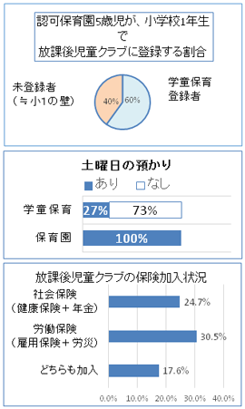 ◆放課後児童クラブの法人化と質の向上現状、社会保険や労働保険への加入状況は、右下のグラフのとおり、低いことが課題です。指導員さんたちの「処遇改善」は、人材確保や児童クラブの質を向上する要です。福利厚生を改善しなければなりません。また、任意団体たる運営委員会を雇用主とすること自体、暫定的な措置とすべきでしょう。 さいたま市等を視察して、NPOへの移行による運営主体の法人化は比較的スムーズに行われた印象でした。岡山市が事業を委託する上でも、法人化を急ぐよう求めたところ、支援策を考えるとの表明がありました。
