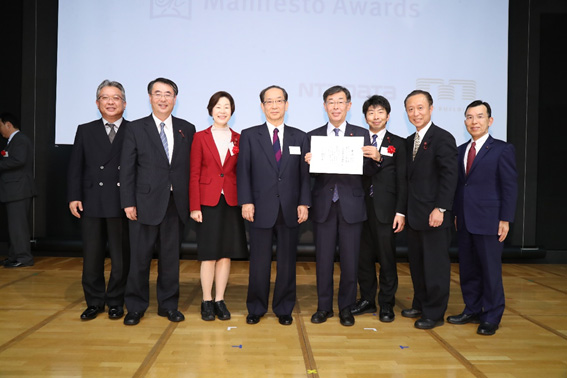 地方自治体の首長や議員、地域住民らの活動実績を表彰する「第11回マニフェスト大賞」(マニフェスト大賞実行委員会主催)の授賞式が11日、都内で開かれ、2014年に発表した政策提言書「岡山市民未来創生プラン」の進捗状況を検証した公明党岡山市議団(則武宣弘団長)が「優秀マニフェスト賞(議会)」を受賞しました。