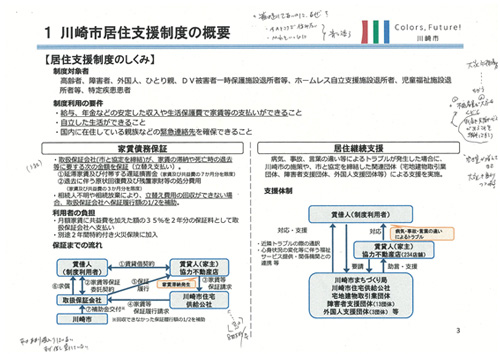川崎市では、外国人市民をはじめ高齢者、障がい者、ひとり親世帯などが民間賃貸住宅に入居しようとする際、家賃の支払いができる(支払い能力がある)にも関わらず、正当な理由がないまま入居を拒まれていたことを背景に、民間賃貸住宅への入居機会の確保のため、2000年4月に川崎市住宅基本条例を制定している。
