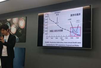 この日の講義2つ目は、がん検診の受診率向上についての内容が主だった。日本人の死因第1位であるがんについて、我々は知らないことが多い。国立がん研究センターでは、これまで行われた様々な研究や2016年から始まったがん登録で、患者の膨大なデータが存在している。しかしながら研究結果などは、公表されているものの、あまりその存在が知られていない。がんに対する情報は数多く出回っているが、なかには誤解されているものもあり、正しい知識をもつことで、がんへの対応も正確なものになる。